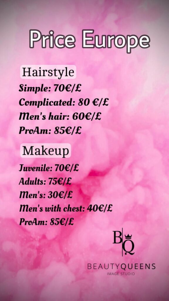 O Váš soutěžní účes a makeup se profesionálně postará profesionální tým vizážistů. Nevratná rezervační záloha je ve výši 300Kč.